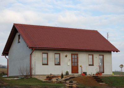 Dům je stavěn na mírně svažitém pozemku. Jedná se o bungalov obdélníkového půdorysu se sedlovou střechou. Objekt o velikosti 4+kk má klasický krov. V domě je navržená rekuperační jednotka. Stavby byla dokončená jako dům bez interiéru.