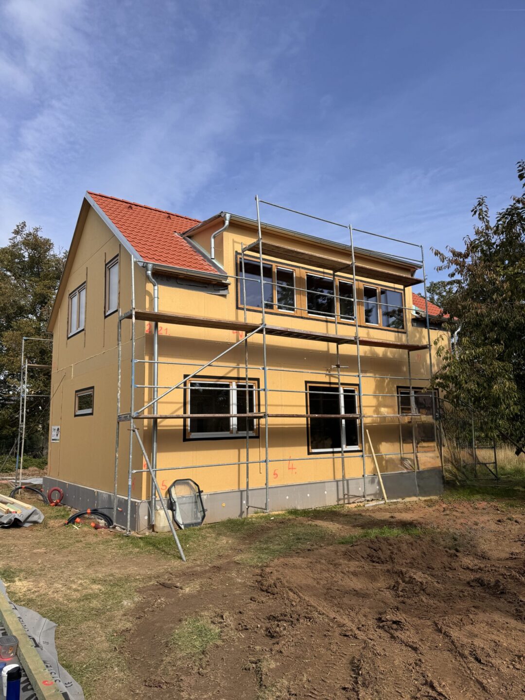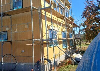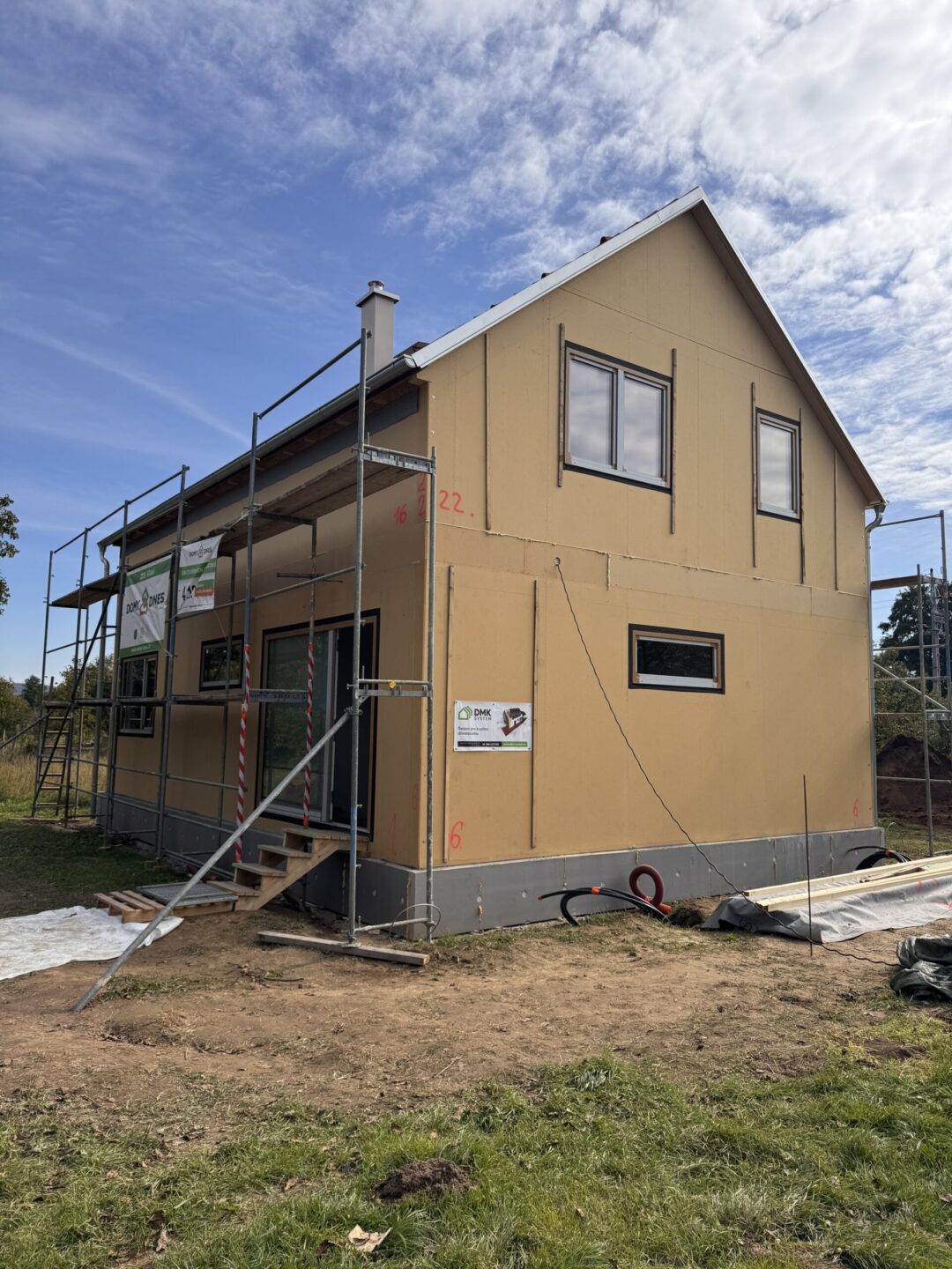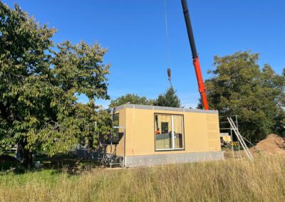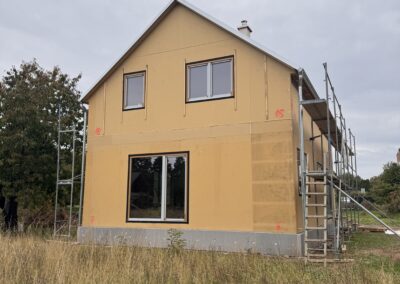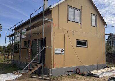 Základem projektu je typový dům XL03, který byl přizpůsoben dle konkrétních přání investora. Pro vytápění a příjemnou atmosféru slouží komín s integrovanou krbovou vložkou. Hned při vstupu vás přivítá velmi prostorné a prosvětlené zádveří. Kompletně prosklený vikýř nabízí krásný výhled do zahrady a exteriér domu dotváří dřevěné okenice.